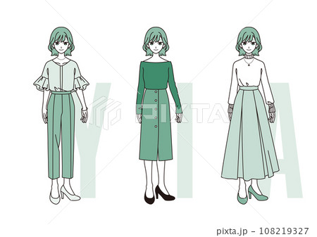 ファッションの三大シルエット【女性】緑ver.