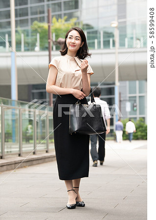 都会のビジネスウーマン 通勤 街角 日本人女性 全身