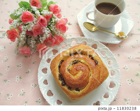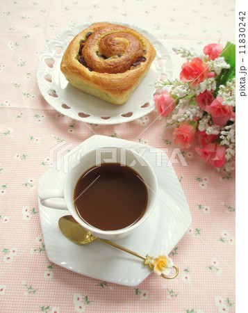 朝食イメージ レーズンのデニッシュパンとコーヒー