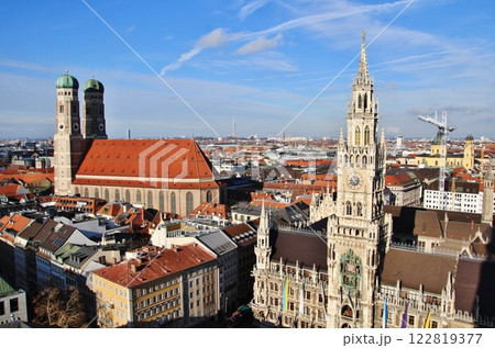 ヨーロッパのドイツ連邦共和国 バイエルン州の州都ミュンヘン 聖ペーター教会展望台から市庁舎などの眺め