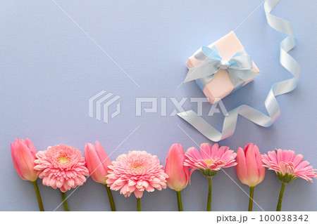 ホワイトデー ギフトボックス ピンクのガーベラとチューリップ