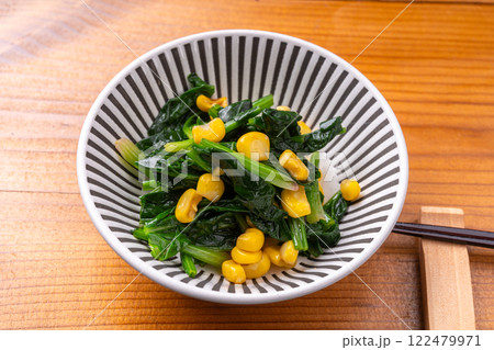 ホウレンソウとコーンのおひたしの画像素材(写真・イラスト) 1ページ目