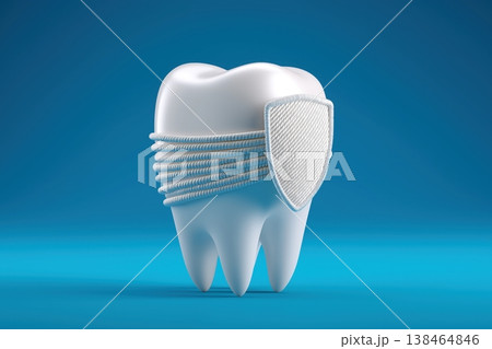 Strong healthy tooth protected by a white shield and band, symbolizing dental care and defense