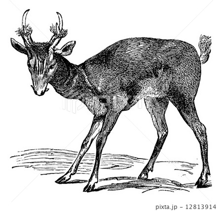 Common muntjac (cervulus vaginalis) or Barking deer, vintage eng
