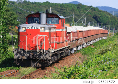 美祢線を走る石灰石貨物列車(JR貨物 DD51形ディーゼル機関車)