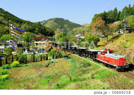 初節句の鯉のぼりと西金工臨(水郡線)の風景