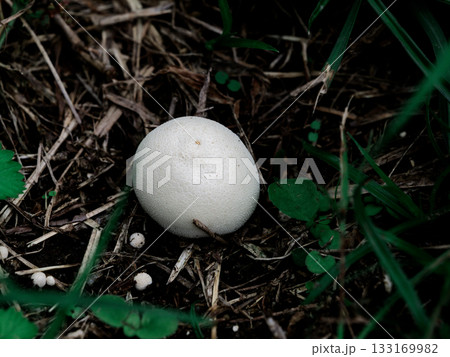 白い色のホコリタケ