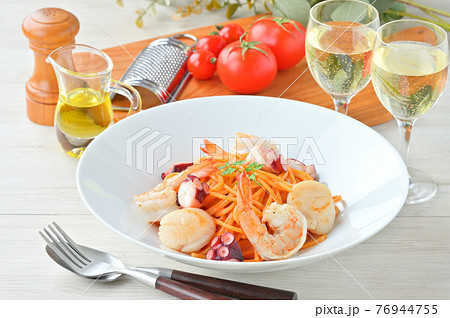 シーフードパスタ トマトソースのパスタ イメージ素材