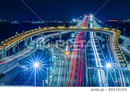 海ほたるの軌跡が美しい夜景