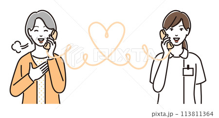 電話で健康相談するおばあさん