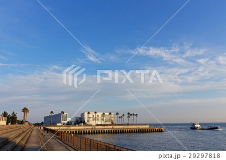 舞子の海岸と沖を通る船