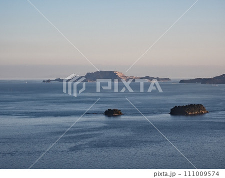 相生湾の西側にある坪根漁港と東側金ヶ崎の風景