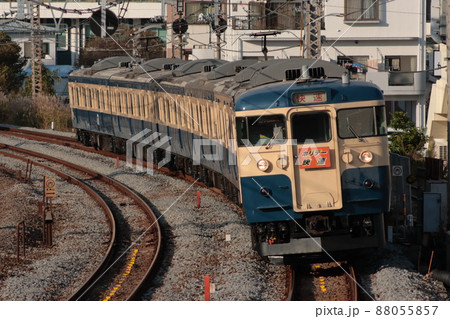 夕日を浴びて目的地鎌倉を目指して力走する115系「ホリデー快速鎌倉」号_2011/11/12撮影