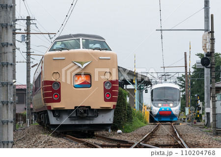 富士急行線に入線する183・189系豊田車 ホリデー快速富士山号