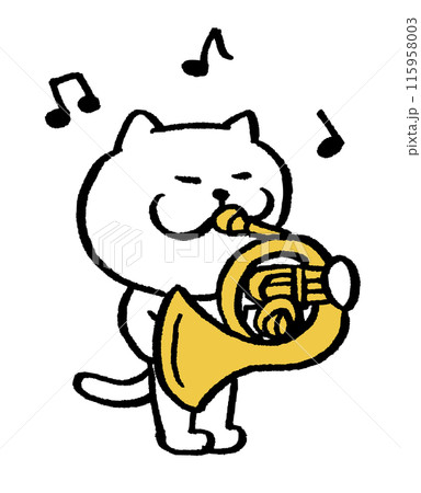 かわいい白猫キャラの楽器演奏