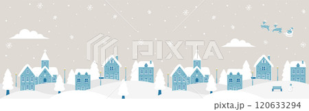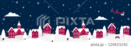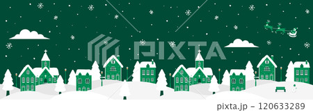 "Merry Christmas!" クリスマス・冬の街並み 横長バナーイラスト