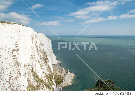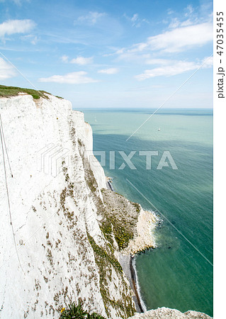 イギリス郊外のドーバー海峡 切り立つホワイトクリフと青い海