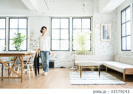 リビングでくつろぐ若い女性