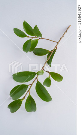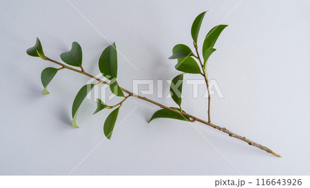 白背景の榊の葉と枝