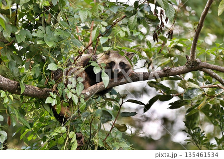樹上で休むホンドタヌキ