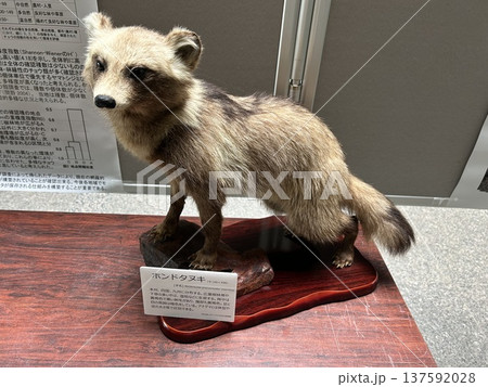 埼玉県所沢市の狭山丘陵いきものふれあいの里センターの剥製、ホンドタヌキです。