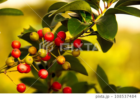 赤い実をつけたモチノキ
