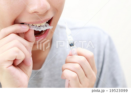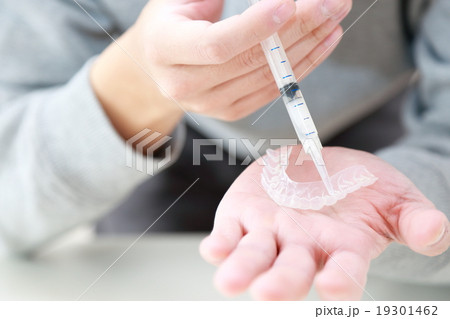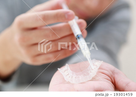 ホームホワイトニング イメージ マウスピースに薬剤を入れる若い女性