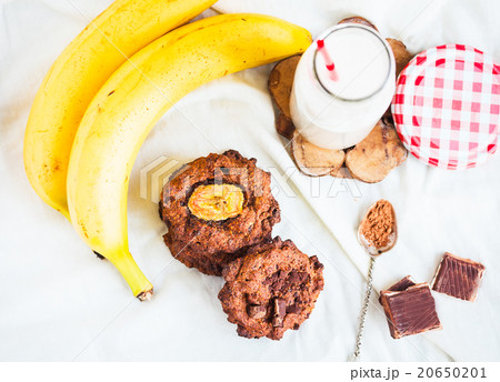 homemade oatmeal cookies with chocolate, banana