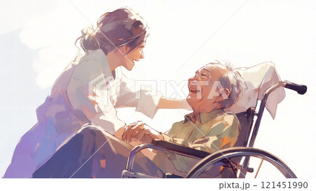 患者さんの様子を見る看護師の水彩イラストのAI生成画像