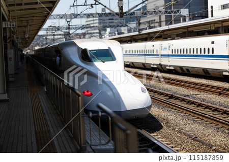 新幹線ホームの乗客 旅行客 ビジネスマン