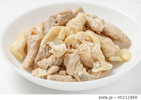 ボイルした豚ガツ(胃袋)のクローズアップ