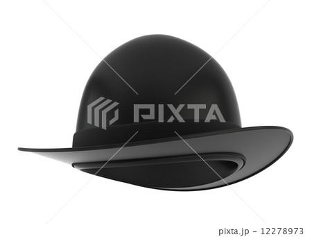 A stylish black bowler hat with blue ribbon isolated on a white background. Vector illustration.