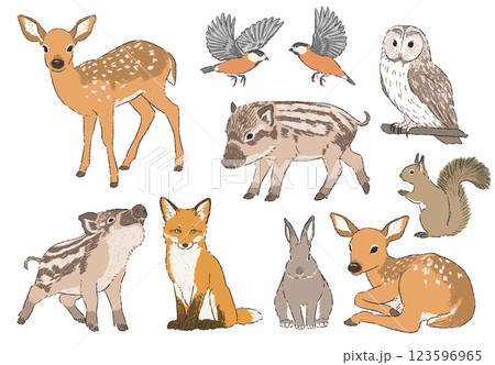 フォレストアニマルのデフォルメイラスト【森の動物セット】