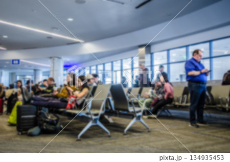 ロサンゼルス空港 搭乗ゲート前 搭乗時間を待つ人々のボカシ画像