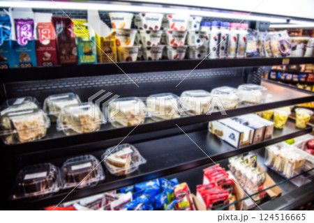 ボカシ画像 アメリカ・ユタ州のガソリンスタンドに併設しているコンビニエンスストアの店内風景