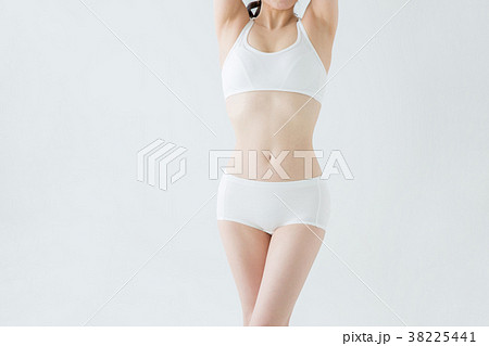 若いアジア人男性の下着姿の美容や整体向けの全身の裸の白バックのイメージイラスト図