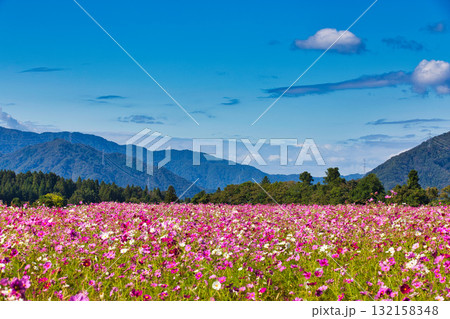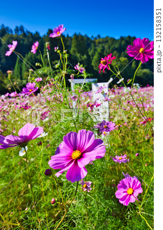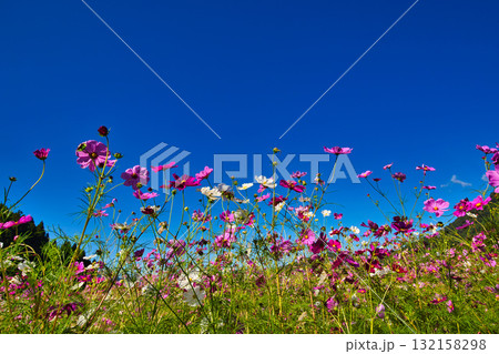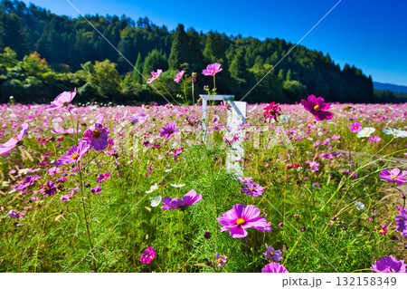 陽を浴びて眩しいコスモス畑