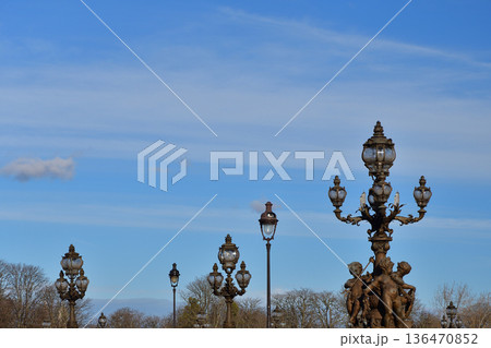 2026年2月4日撮影 冬の昼間の光に映えるパリ・アレクサンドル3世橋の華麗な街灯