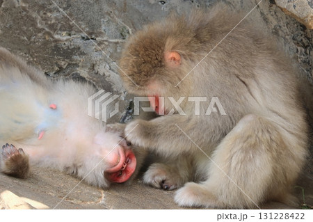 ノミ取りをするニホンザル ニホンザルの毛づくろい