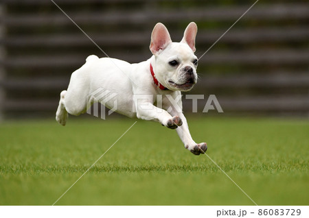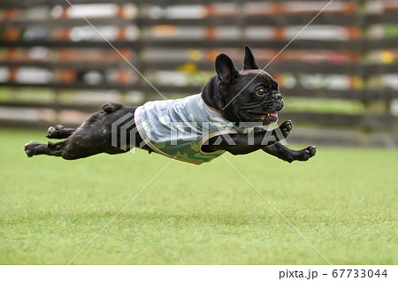ドッグランで遊ぶフレンチブルドッグとペキニーズ