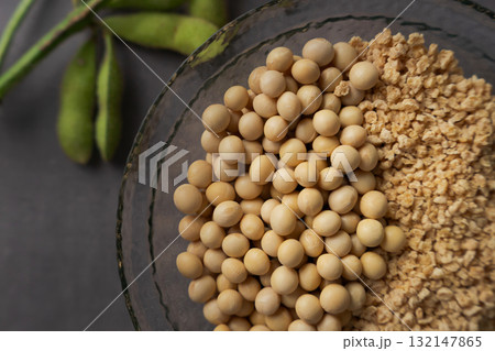 テーブルに盛られた大豆と豆乳