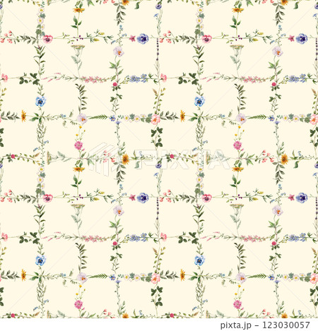 Seamless Diamond Floral Repeat Pattern with Small Ditsy Flowers. Charming Floral Tile Design. Vintage Floral Lattice, Illustration