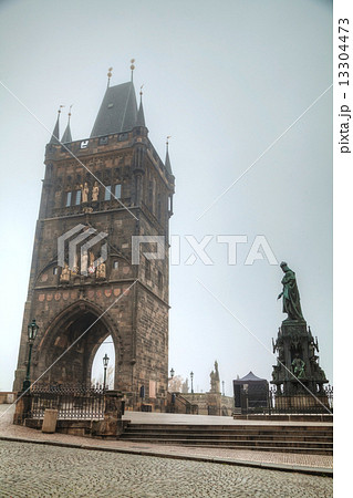 Empty Charles Bridge in Prague in the morning; Czech Republic.