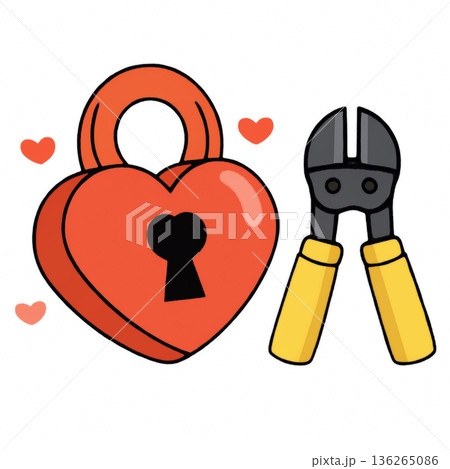 Heart padlock bolt cutter love security romance illustration red yellow cute cartoon