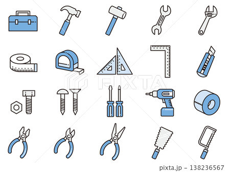 工具 アイコン ノギス 糸鋸 レンチ ペンチ 電動ドリル ノコギリ カッター 工具箱 ボルト 万力等