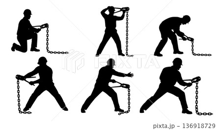 Black Solid Worker Bolt Cutter Silhouettes Set of Six on White Background
