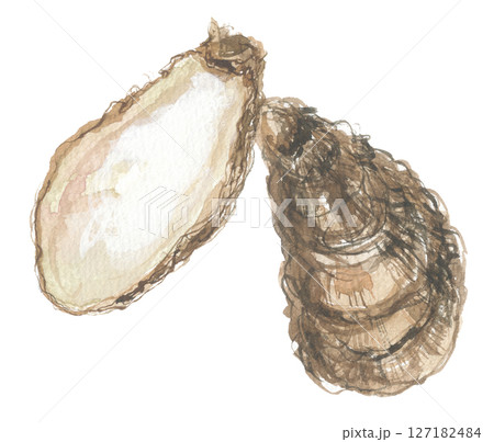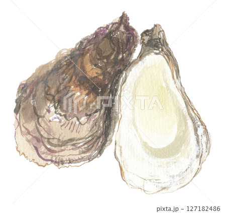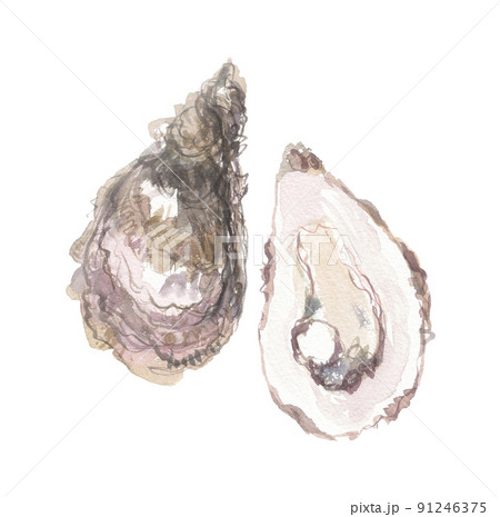 水彩で描いた牡蠣 ボレイ 牡蛎
