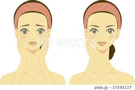 スキンケア 肌がボロボロとツルツルの女性イラスト