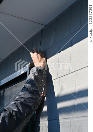 マスキングをする職人 コーキング打ち替え 外壁塗装工事
