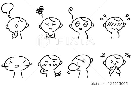 様々な表情の男性のセット 考える・照れる・笑う・恥ずかしい